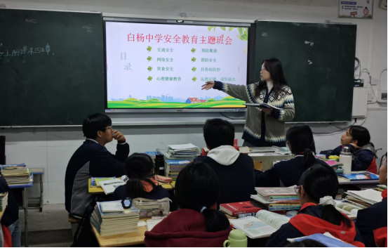 作为班主任,杨茜构建了“安全+感恩”的育人体系。安全教育课上,她播放校园欺凌短片组织讨论,设立“秘密信箱”及时处理学生诉求,演示防溺水自救技巧与交通安全手势,还带领学生绘制“校园安全地图”,在池塘、陡坡等危险区域标注警示符号;感恩教育中,她用镜头记录备课、批改作业、家访等日常,制作《老师的一天》短视频,让学生直观感受教育工作者的坚守与付出;母亲节、父亲节期间,组织“给父母说一句话”视频录制活动,让“谢谢老爸,你辛苦了”“妈妈,我爱你”等质朴话语跨越距离温暖亲情;考试季的“奖励百宝箱”更是杨茜的育人巧思:里面装满亲手书写的鼓励卡片、印着“加油”字样的笔记本、精致书签与小零食。总结会上,她不仅表扬成绩优异的学生,更为每一位进步的学生颁奖。学生陈浩在作文中写道:“杨老师就像一束暖阳,照亮了我的心房,也让我明白:语文学习并非遥不可及,我也能学好它!”