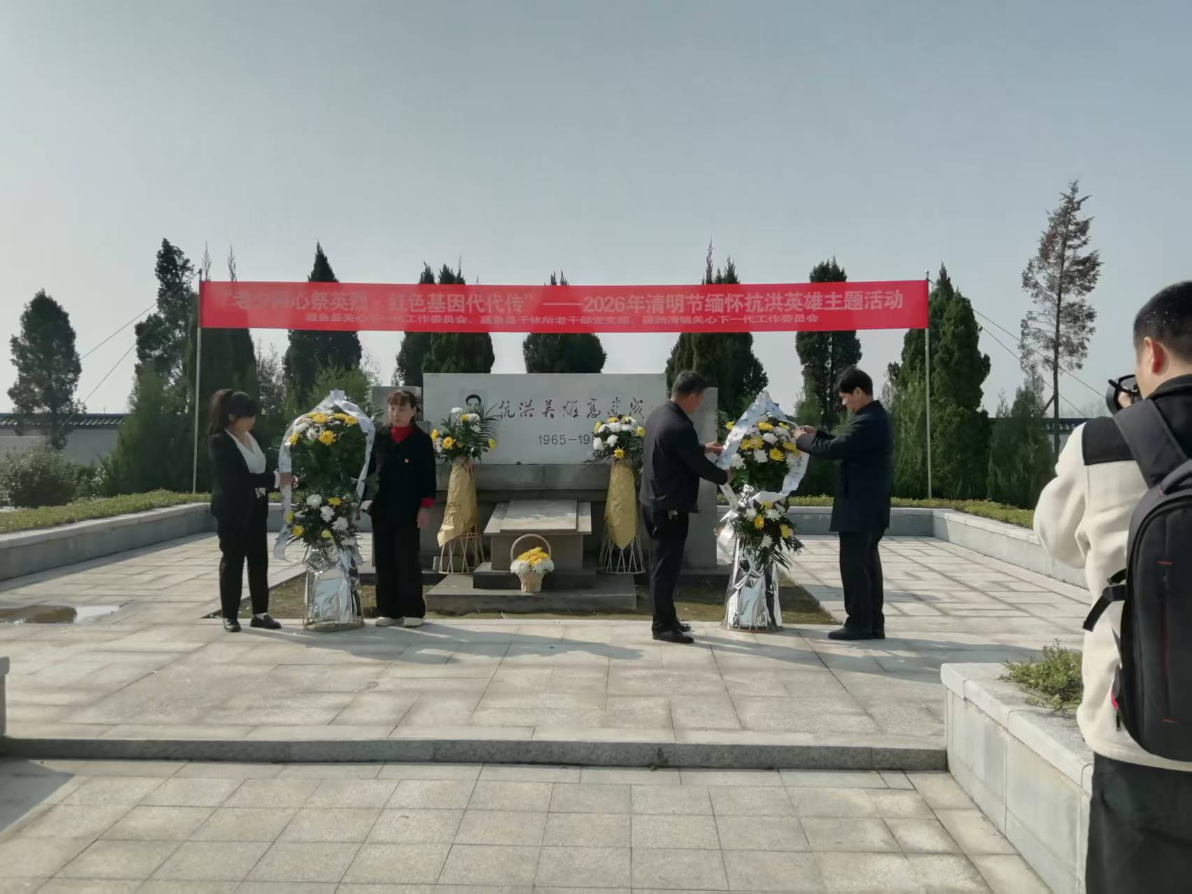 陵园内,松柏苍翠,庄严肃穆。抗洪烈士纪念碑巍然矗立,“人民不会忘记”六个金色大字在晨光中熠熠生辉。上午10时,全体人员整齐列队,神情肃穆。伴随着雄壮的中华人民共和国国歌奏响,祭扫仪式正式开始。全体人员向英烈默哀三分钟,现场寂静无声,唯有风声拂过松枝,寄托着无尽哀思。