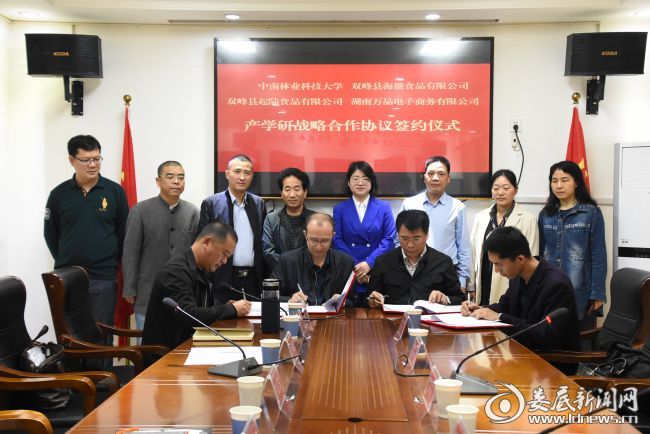 刘燕代表双峰县委政府感谢中南林科大与双峰县长期以来良好的校企合作,她说,青树坪米粉是青树坪镇传统特色小吃,吃起来有韧劲,辣得有味道,代表娄底连续两届参加了湖南米粉擂台赛,线上线下销售日趋火爆。衷心希望本次产学研战略合作各方发挥好各自优势,实现产学研长期稳定发展,打造青树坪米粉知名品牌和产业体系,助推青树坪米粉产业高质量创新发展。(赵九峰 禹波)