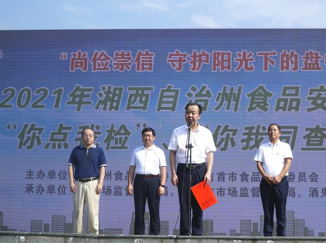 今天上午,湘西土家族苗族自治州2021年食品安全宣传周暨“你点我检”“你我同查”启动仪式,在吉首市世纪广场举行。