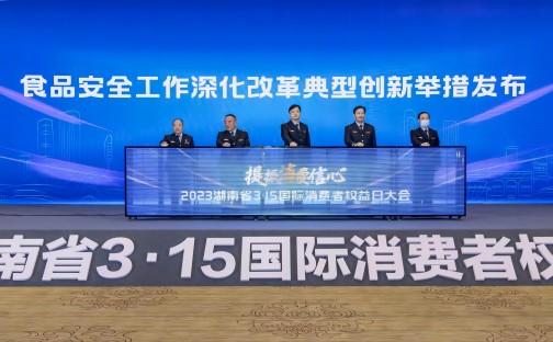 中国食品安全报讯(喻志远 记者 陈赛)3月15日上午,湖南省市场监督管理局、湖南省消费者权益保护委员会联合在长沙举办2023湖南省3·15国际消费者权益日大会。省人大常委会党组副书记、副主任张剑飞,省人民政府副省长蒋涤非,省人民政府办公厅副主任贺建壬,省市场监管局党组书记、局长钱俊君,省消保委常务副主任 向曙光等出席会议。