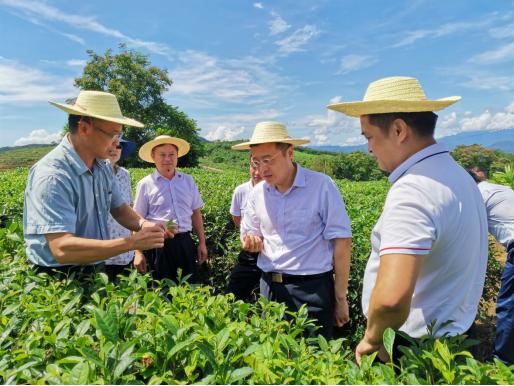 海垦集团党委书记、董事长盖文启(右二)于9月23日在海垦茶业集团白马岭茶业公司15队茶园调研时的情景