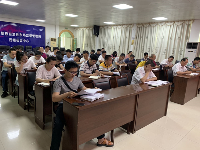 海南省白沙县市场监督管理局干部职工认真听会