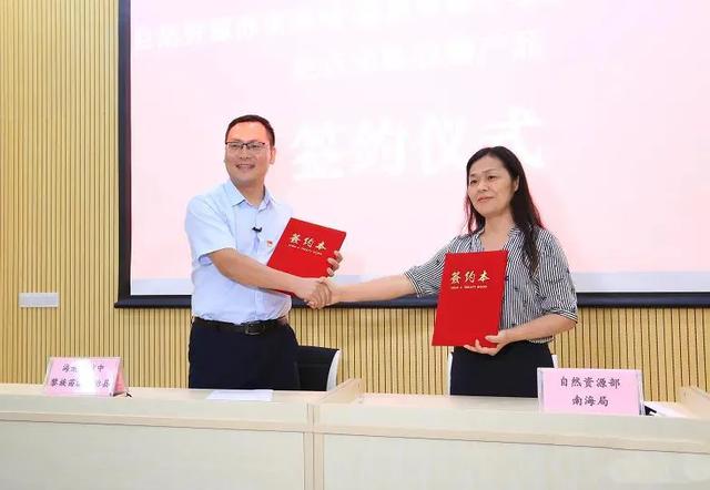 在签约仪式上,县委常委、副县长王安涛与自然资源部南海局党办副主任潘虹共同签署合作协议。
