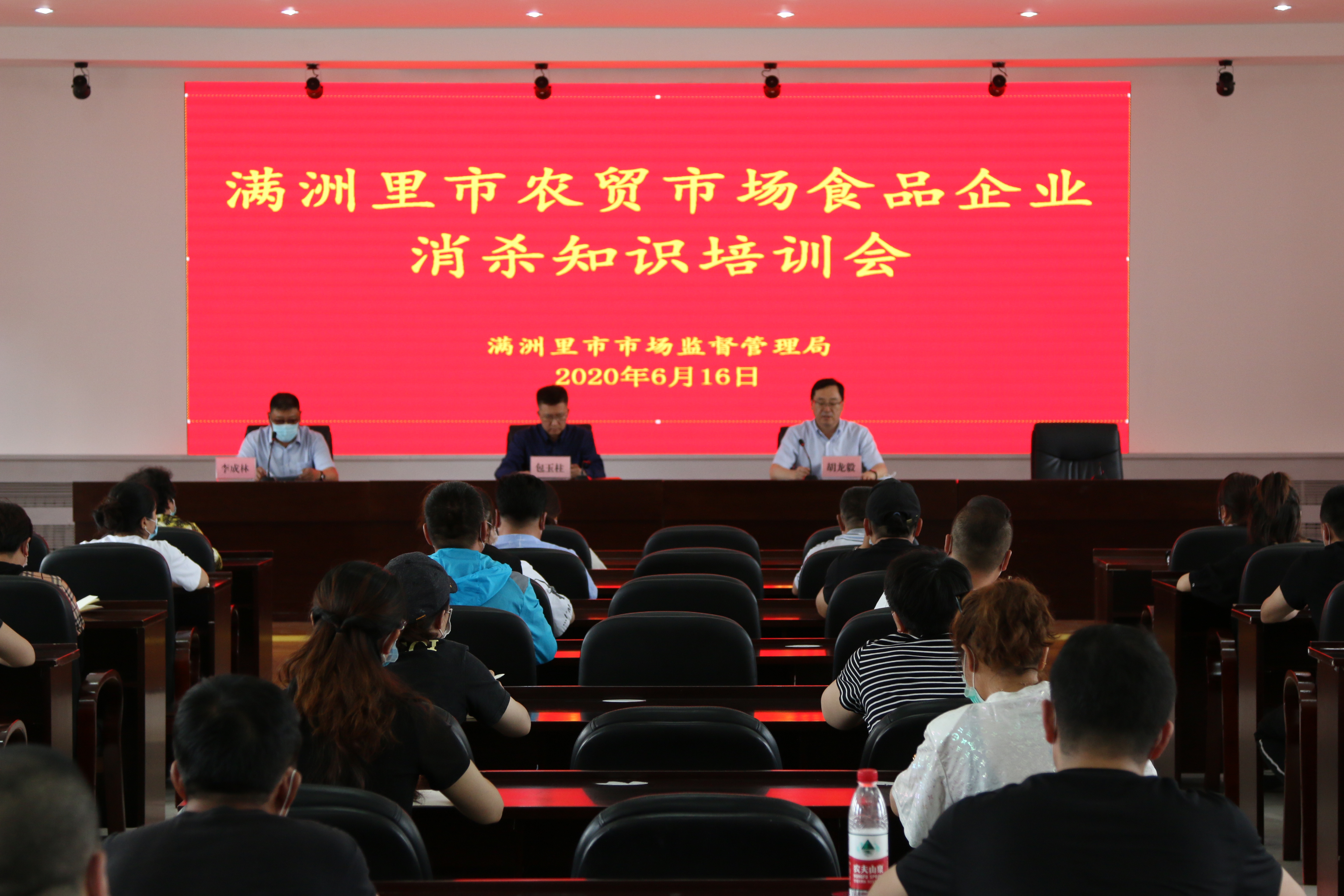 满洲里市农贸市场食品企业消杀知识培训会现场