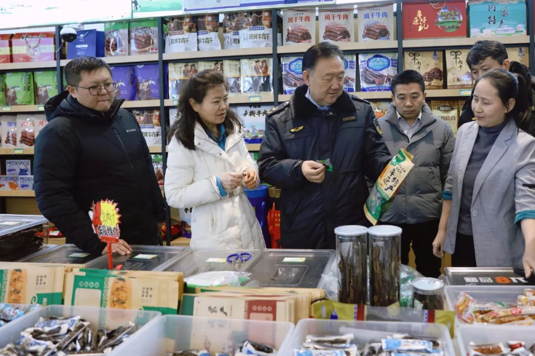 韩玉光带队在康巴什区检查牛肉干及其他肉制品食品安全 图片来源:鄂尔多斯市市场监管局