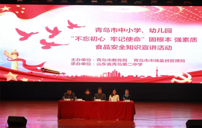 中国食品安全网讯(刘承鑫)近日,青岛市教育局、青岛市市场监督管理局在青岛二中联合举办青岛市中小学、幼儿园“不忘初心 牢记使命”固根本 强素质食品安全知识宣讲活动。本次活动特邀山东省食品安全专家、山东省食品药品检验院高级工程师范丽进行主讲,各区市教体局、局属学校、民办学校、幼儿园分管食品安全的管理人员以及青岛二中的部分学生400余人参加了本次活动。青岛市教育局、青岛市市场监督管理局相关负责人出席活动。