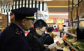 活动同时,监管人员与网络交易第三方平台还共同抽查了外卖实体店。按照参与现场点餐消费者的要求,对位于凯德MALL广场负2层的亚惠餐饮有限公司进行了现场检查,整体食品安全状况良好。执法人员重点检查了证照资质和人员健康管理情况,查验了食品原料进货索证索票和查验情况,现场加工环境卫生情况等,对冷藏柜中个别食品裸放等可能存在交叉污染隐患的问题,当场要求经营者进行了整改。