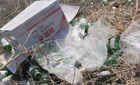 山东即墨是我国主要海参养殖区域之一。2019年10月,正是海参苗培育期。记者来到了栲栳湾养殖基地,这里有大大小小近百家海参养殖户,在一个池塘边上的草丛里,堆放着近百个玻璃瓶,上面写着:敌敌畏。