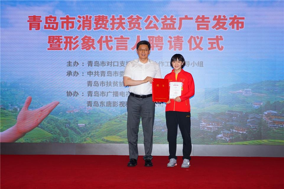 影视演员黄晓明和体育明星陈梦,都是青岛籍。陈梦是中国乒乓球女子国家队运动员,先后获得世锦赛、世青赛等多个世界冠军,目前在乒乓球女单世界排名第一,也是第九位登顶世界第一宝座的中国女乒选手。他们在影视拍摄、训练比赛非常繁忙的情况下,挤出宝贵时间,免费为消费扶贫拍摄了公益广告片,并慷慨为青岛市消费扶贫形象代言。