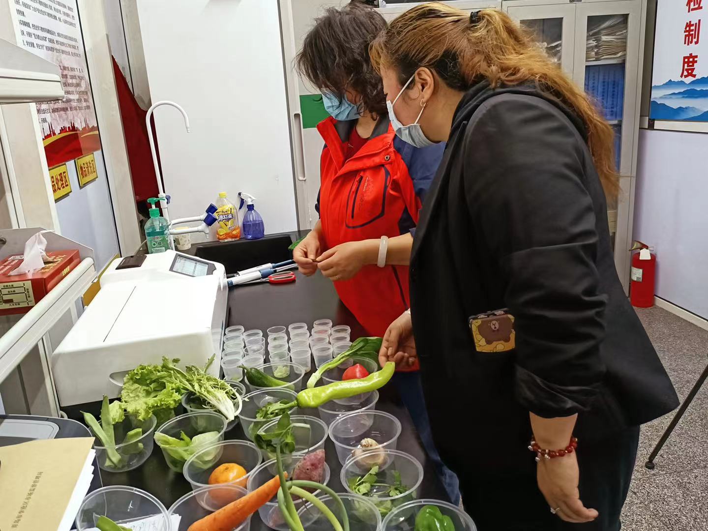 围绕备受群众关注的食用农产品质量安全问题,在九水农贸市场开展“检测室开放日”活动,以与百姓生活息息相关的食用农产品为抓手,让消费者“零距离”参与到快检活动中,帮助群众提高食品安全意识。九水农贸市场检测室工作人员介绍“每天根据市场进货情况确定检测的品种和批次,随着季节时令不同,检测品种会有所变化,检测批次一般是每天20到30批次,现在天气转暖会尽可能多的检测,让大家吃的放心舒心,大家也可以把自己买得菜送过来免费检测”。