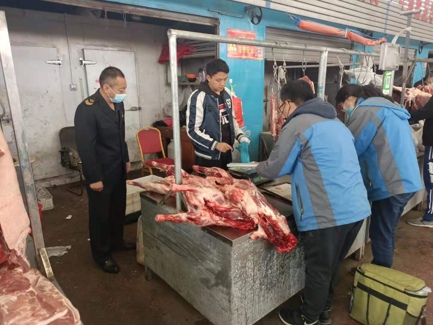 位于青岛市李沧区重庆中路484号的华中蔬菜批发市场是市内三大批发市场之一,各类生畜禽肉日交易量80000多公斤,区市场监管局牢牢把握“小切口、大变化”原则,严抓生肉质量,打通服务群众“最后一公里”。一方面,与各类生肉销售经营户签订承诺书,强化主体责任意识,另一方面,采取驻场监管的方式,从各类生肉入场即开始查验,未取得动物检验检疫合格证和肉品品质检验合格证“两证”的禁止入场,各类生肉入场后,执法人员对生肉含水量等指标进行快速检测,杜绝问题生肉上市交易,同时逐户检查经营户公示票证的情况,严厉查处肉、证不符的经营行为,确保百姓买的放心、吃的安心。