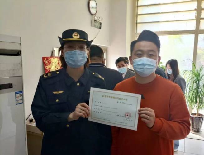 现场为小摊贩登记制发摊点证 图片来源:青岛市城阳区市场监管局