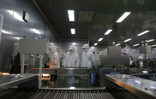 海关关员在出口紫菜车间监管 张斌摄