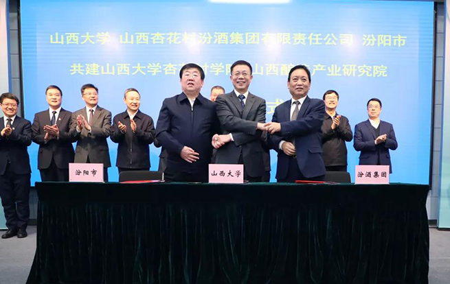 山西大学党委书记符惠明表示,对于地方高校而言,扎根区域经济社会发展的深度决定着大学成长发展的高度,山西大学始终把服务山西的贡献度作为衡量办学治校水平的重要标尺。山西大学将与汾阳市和汾酒共同努力,探索校、地、企合作新的融合人才培养模式,把学院和研究院建设成为酿酒人才的培养基地、酿酒技术的研究基地、中国酒文化的传承基地、酿酒行业的咨询基地,为山西高质量的转型发展做出新的、更大的贡献。