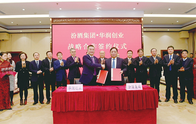 2018年2月3日,汾酒集团与华润创业战略合作签约仪式现场。