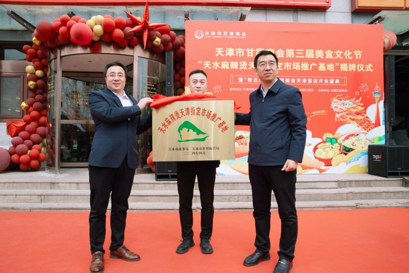 “天水麻辣烫天津指定市场推广基地”揭牌 图片来源:天津市商务局