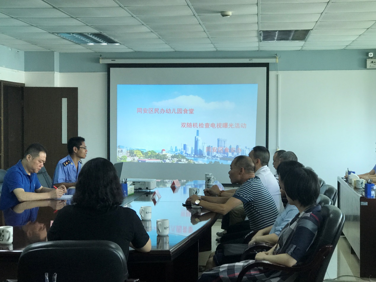 “各位观众晚上好,欢迎收看同安食安之窗现场执法新闻专栏,开学季打响“食安保卫战”,同安市场监督管理局“双随机”抽查监督走进民办幼儿园食堂……”这是同安电视台“食安之窗”新闻专栏播放的同安区市场监管局的一次民办幼儿园食堂“双随机”抽查行动,执法人员不提前通知、不先打招呼,直接深入两所幼儿园食堂的厨房重地,同时邀请部分区人大代表、政协委员及区纪委、区检察院相关人员、学生家长全程参与,并将检查结果通过电视栏目曝光,起到了很好的宣传、执法、震慑效果,深受广大人民群众的喜爱。