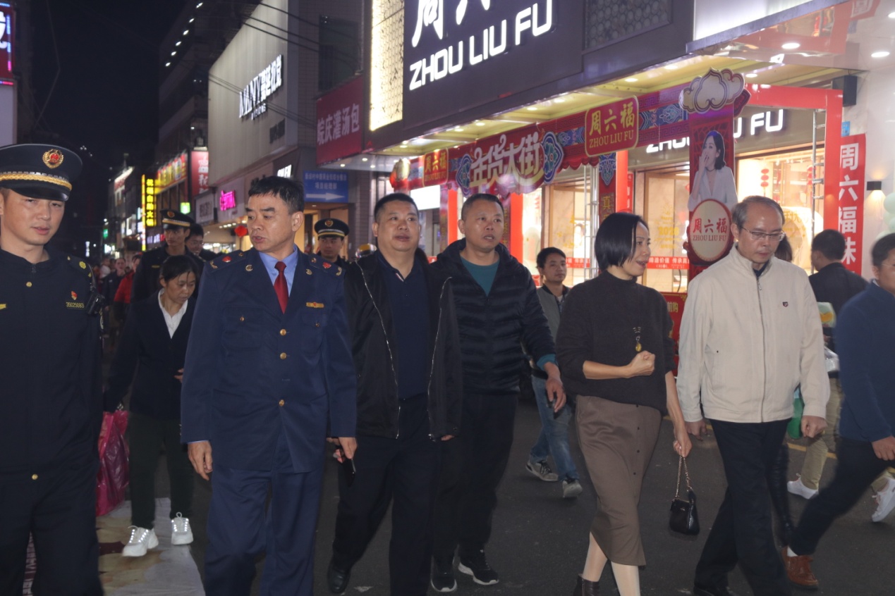 图为海沧区市场监督管理局局长张玉萍(右二)调研新垵中路食品摊贩划定区域