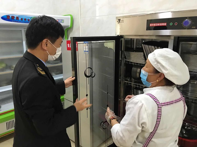 督促学校开展食品安全自查自纠,按规范要求落实食堂食品安全管理制度和疫情防控措施,推进学校食堂“明厨亮灶”提质扩面,提升食堂食品安全管理水平,参与复课学校食堂疫情防控暨食品安全事故应急演练,对存在问题现场指导整改。
