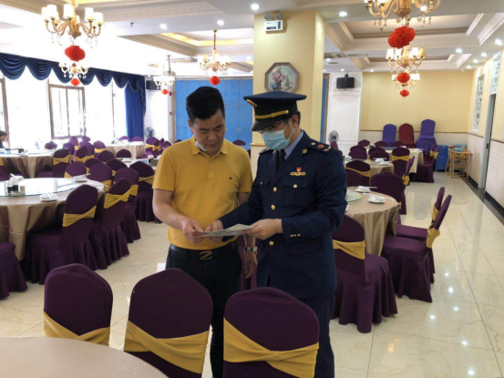 执法人员讲解酒店疫情防控工作具体要求