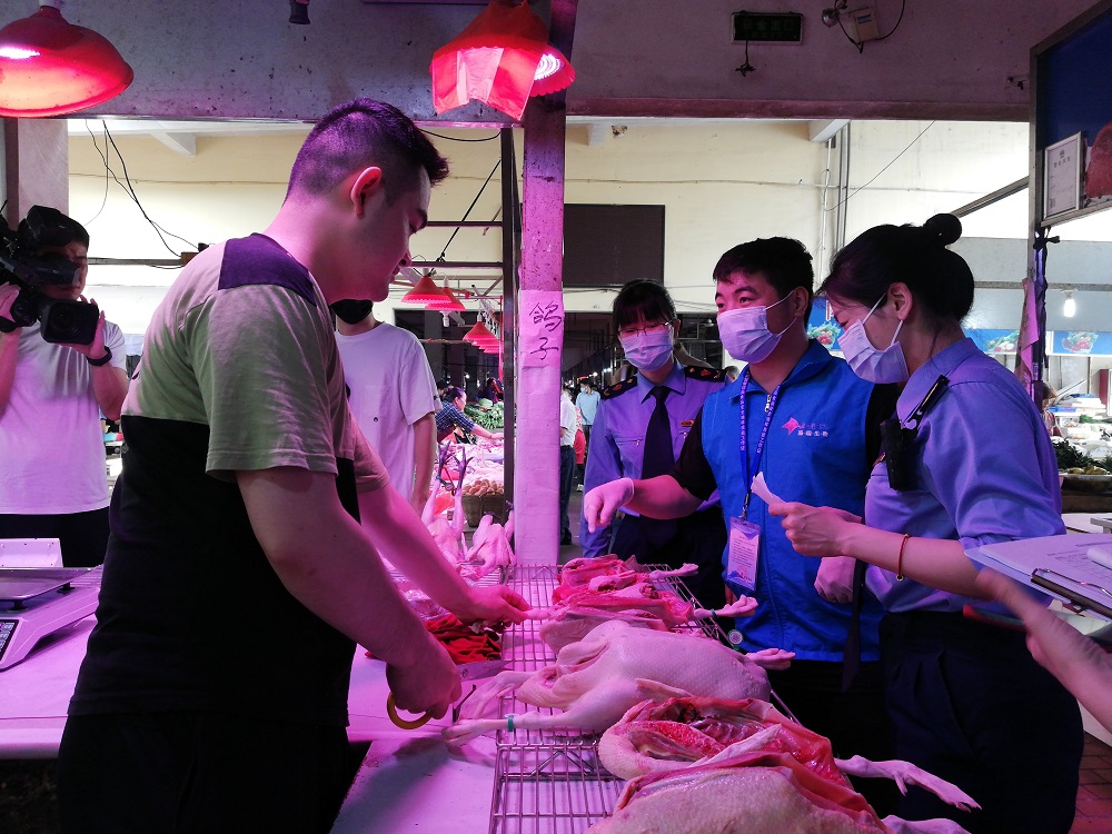“我买的这把青菜都看不见虫眼,帮我检测下有没有农药残留”、“水果能检吗?芭乐、香蕉帮我检测检测”、“帮我检测这块肉有没有瘦肉精”、“你们这个快速检测太好了,半小时就出结果了,我们也吃得安心”…… 在岭上农贸市场,执法人员提供的“你点我检”快检服务,吸引到众多市民群众。活动现场不仅让市民充分了解了食品快检的全过程,而且调动了市民参与食品安全监管的积极性,切实提高创建国家食品安全示范城市支持率、知晓率、满意度。同时,执法人员还对农贸市场中的春卷皮、猪肉、牛肉等产品,进行了抽样检测,并查看索票索证。此次快检检测18批次食品,涉及硼砂、瘦肉精、氯霉素、农残等22个项目,全部合格,合格率100%。