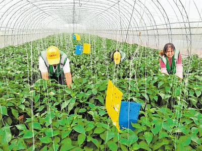 “过去我们种植大白菜、空心菜等大路菜,效益不太明显。”弘基牧业有限公司副总经理贾铁斌介绍,经过中国农科院有关专家论证和试种,种植进口彩椒产量高、营养丰富、口感好,我们就把315个大棚全部种植了彩椒。