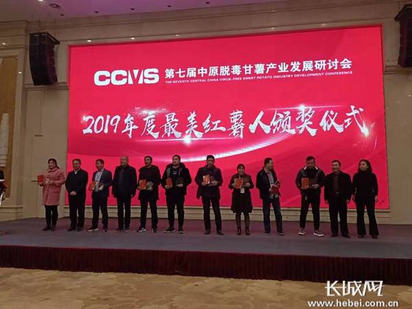 12月15日,第七届中原脱毒甘薯产业发展研讨会在邯郸市磁县溢泉湖举行。本次研讨会以“产业融合、创新发展”为主题,邀请国内甘薯界权威专家、优秀甘薯种植户、育苗单位、农资企业、甘薯加工、销售企业代表共200余人出席参加。会上,20名甘薯从业者荣获“2019年度最美红薯人”称号。