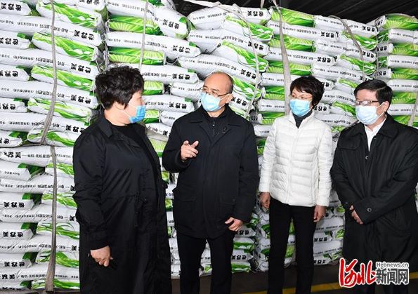 河北省省长许勤到邢台市调研检查。这是许勤到威县根力多生物科技股份有限公司,了解春耕备播和企业产能等情况。 孟宇光摄