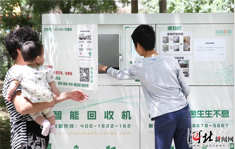 近日,石家庄市谈固大街一社区内,一款智能废品回收装置吸引了居民前来体验。 记者陈建宇摄