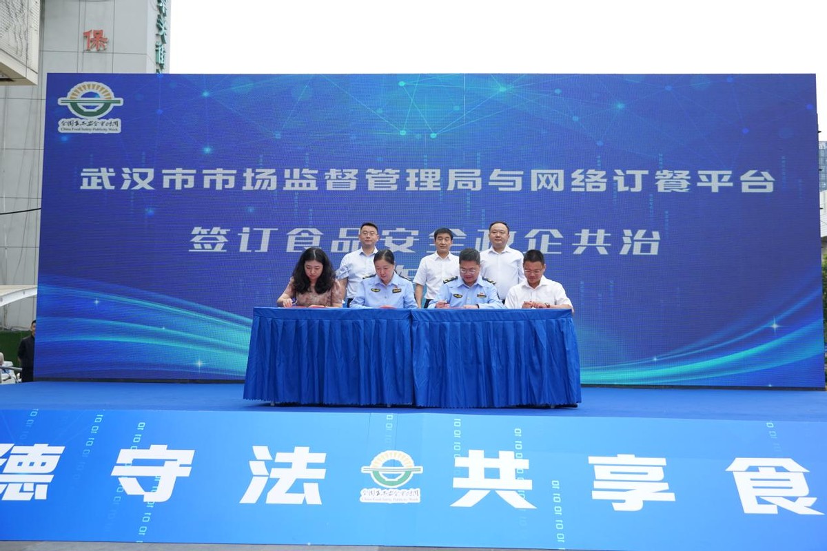 当天活动的一大亮点是武汉市市场监管局与美团、饿了么两大外卖平台代表共同签署《网络餐饮食品安全政企共治合作协议》。这份协议围绕“政企联动、执法协同、维权协作、信息交互”四大维度,明确将建立常态化监管新模式,进一步提升网络订餐安全保障水平,促进平台经济与食品安全高质量发展。