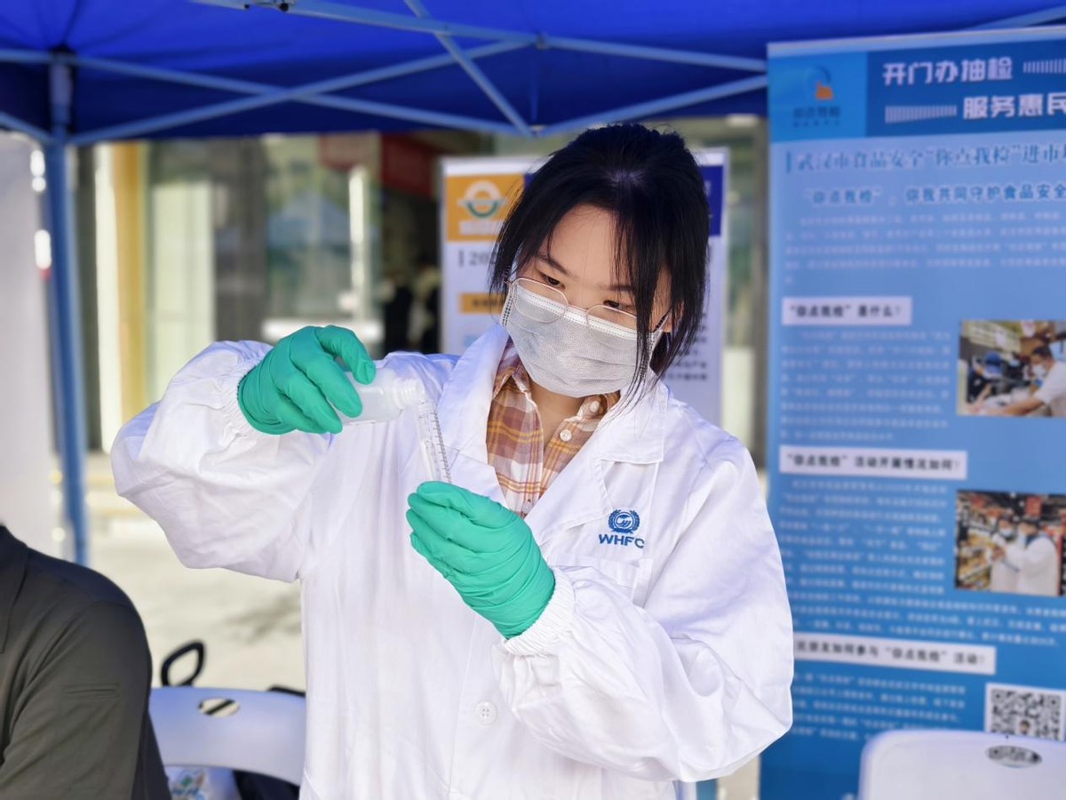 “我刚买的小白菜,麻烦帮忙测测有没有问题?”活动承办方硚口区市场监管局将食品快速检测车开进广场,技术人员现场操作设备,为市民提供免费快检服务。不少市民带着刚采购的蔬菜、瓜果、肉类前来体验。这种面对面、接地气的快检服务,不仅用直观透明的过程解答了群众的心头疑问,更让“舌尖上的安全感”真切地走进了市民心里。
