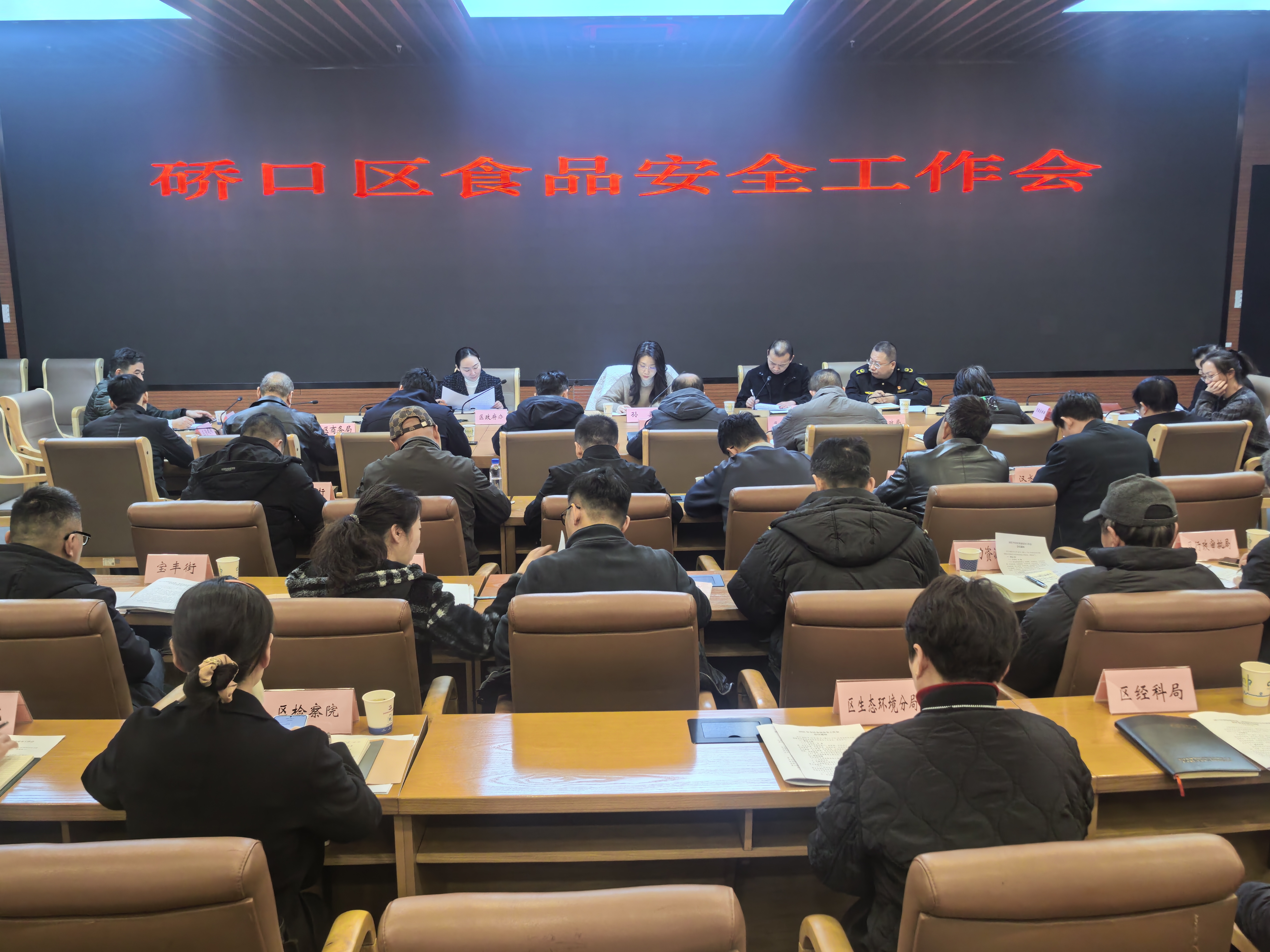 会议首先由硚口区教育局围绕“校园餐”专项整治、六角亭街围绕食品安全属地管理责任进行了交流发言,硚口区市场局全面总结了2025年全区食品安全工作情况,汇报了《硚口区贯彻落实进一步强化食品安全全链条监管意见的重要举措》的起草过程。