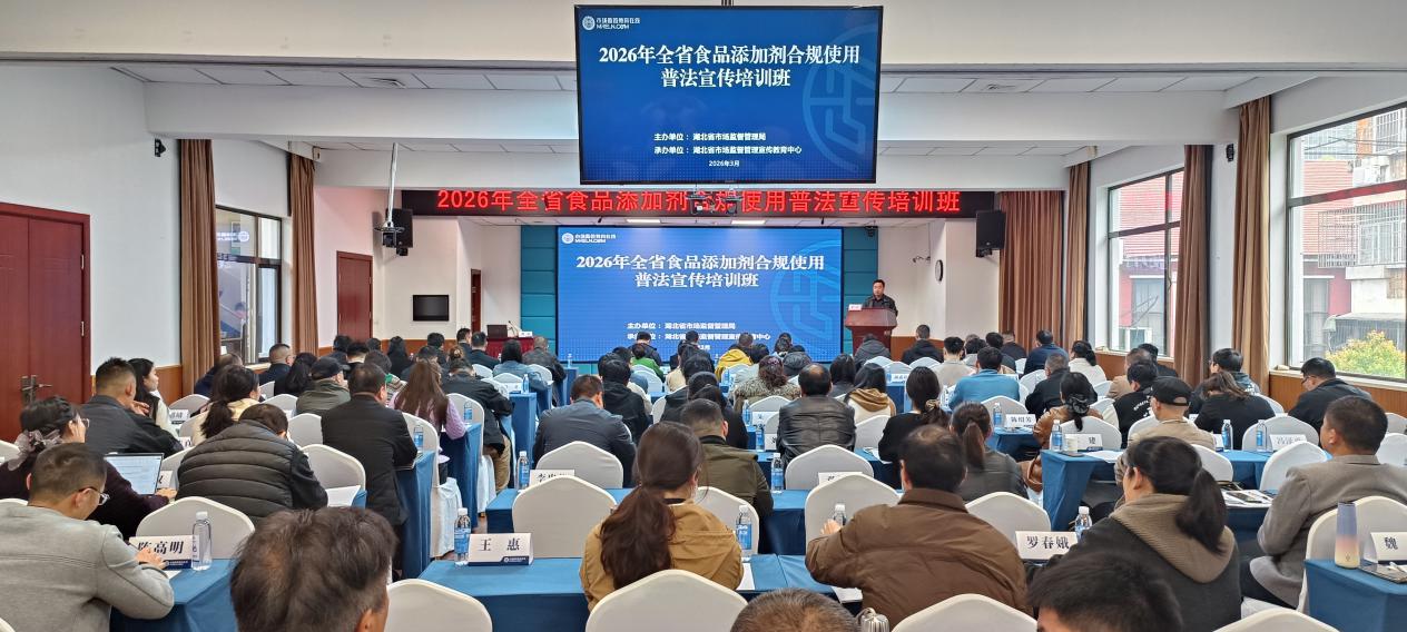 中国食品安全网讯(罗志 樊焱 记者邱水英)为全面贯彻落实湖北省2026年十大民生项目工作部署,深入开展食品添加剂合规使用标准宣贯和专项治理,指导企业规范营养强化剂使用管理,有效防范“两超一非”风险,由湖北省市场监管局主办,湖北省市场监管宣教中心承办的2026年全省食品添加剂合规使用普法宣传培训班在武汉顺利举办,全省110名生产企业食品安全总监或食品安全员参加线下培训,7000余名食品生产企业相关人员同步参与线上培训。