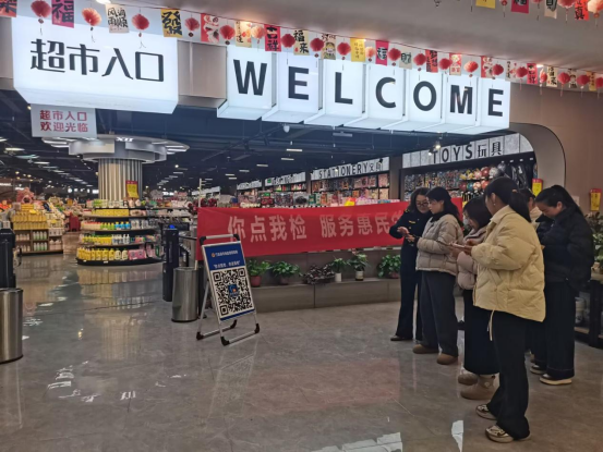 活动现场,“你点我检 服务惠民”的宣传横幅醒目悬挂在超市入口处,市场监管工作人员向消费者详细介绍“你点我检”活动的意义和参与方式。消费者只需扫描二维码即可进入线上点选系统,选择自己关心的食品品种。监管部门将根据点选结果现场进行抽样快检,并实时公示检测结果。