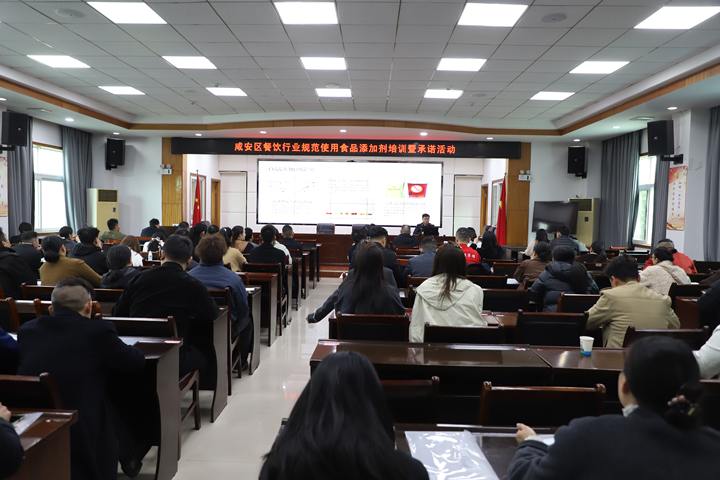 中国食品安全网讯(章和开 记者胡毅)3月25日,咸宁市咸安区市场监管局组织辖区餐饮单位开展规范使用食品添加剂培训暨承诺活动,旨在进一步强化餐饮服务环节食品安全管理,推动食品添加剂使用规范化、透明化。辖区重点餐饮单位负责人、食品安全管理人员等参加活动。
