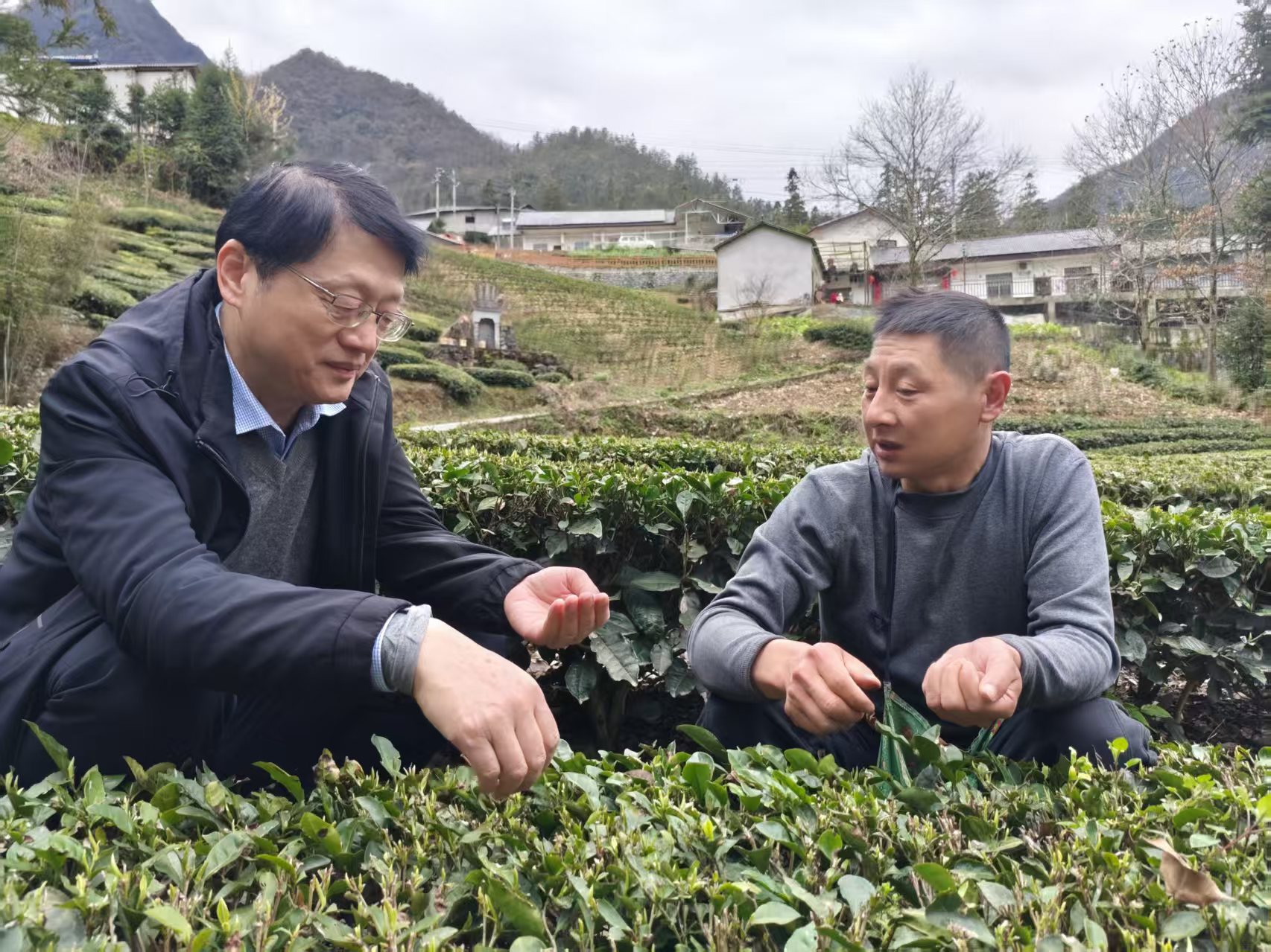 五峰是宜红茶的核心产区、“采花毛尖”的主产地,也是万里茶道宜红古茶道的核心节点。在为期两天的行程中,调研组一行跋山涉水、踏泥踩雾,先后深入采花乡楠木桥村和五峰镇水浕司村、香水村自然村,实地察看古茶树资源现状,与基层干部、企业负责人及茶农面对面交流。