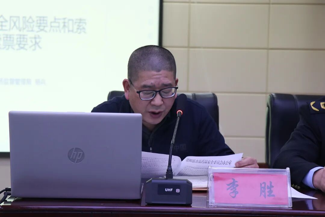 李胜通报了《春季校园食品安全联合检查的情况》,深入剖析了当前校园食品安全工作中存在的突出问题和风险隐患,为后续整改工作提供了明确靶向。