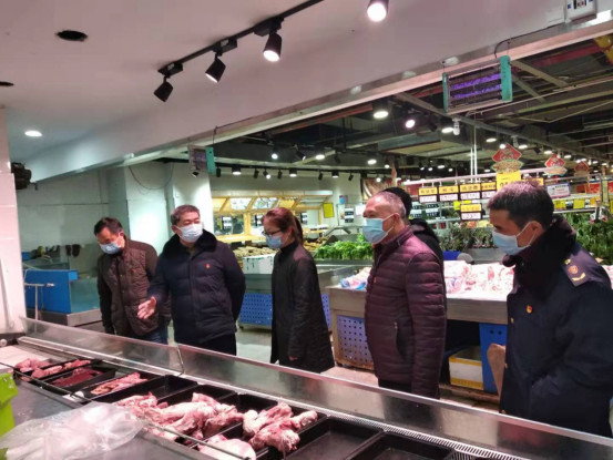 检查组一行检查了各超市蔬菜区、水产区的经营情况以及暂停活禽宰杀和交易的落实情况,实地察看了粮油、蔬菜等生活必需品物资储备情况,详细了解和登记了储备类别、储备品种和物资调运情况。