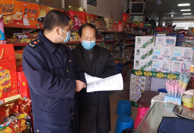 回到龙泉监管所的陈兵迅速进入工作状态。1 月 28 日一大早,他就来到龙泉农贸市场,查看该市场是否关停休市以及该市场的活禽交易点是否已经关停并消毒。随后,他与同事一同对龙泉集镇和小鸦路、土宋路及老汉宜路沿线商超、药店和旅店、网吧进行检查,要求经营者按照《夷陵区新型冠状病毒感染的肺炎防控指挥部 2 号令》的规定暂停营业,并向他们发放《致夷陵区广大经营者的一封信》,呼吁商户严格落实防控要求,加强自身防护。